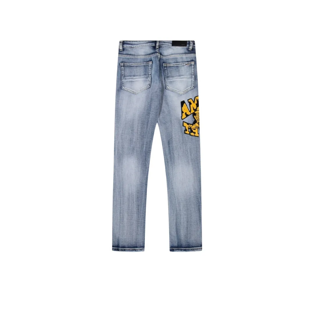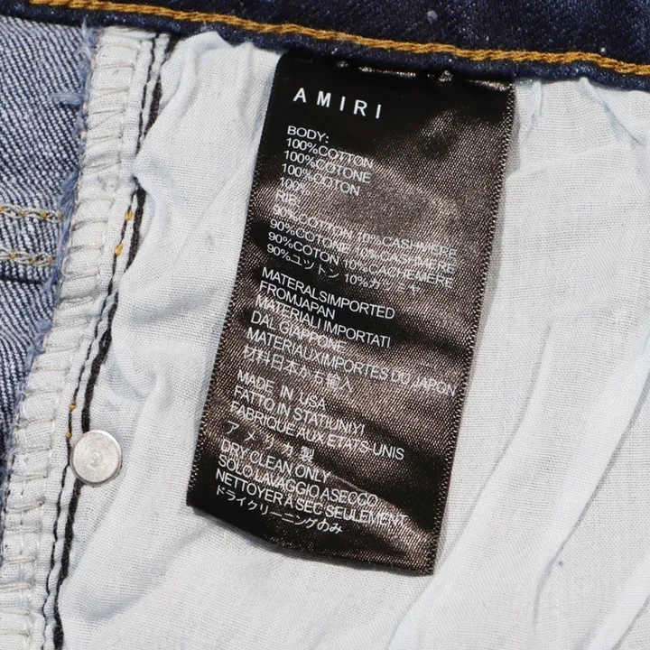 Description: Amiri Jeans are an icon of luxury high-end streetwear, perfectly blending American Rock ‘n’ Roll style with exquisite craftsmanship. The product features a signature skinny or slim fit, crafted from premium denim. Amiri Jeans are globally renowned for their meticulous hand-applied distressing, patching, or other iconic design elements, asserting a rebellious yet refined aesthetic, individuality, and superior status.