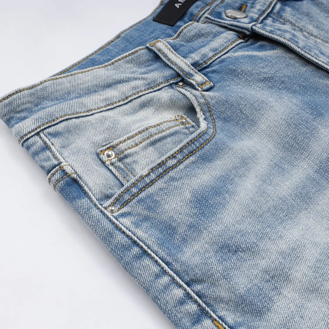 Description: Amiri Jeans are an icon of luxury high-end streetwear, perfectly blending American Rock ‘n’ Roll style with exquisite craftsmanship. The product features a signature skinny or slim fit, crafted from premium denim. Amiri Jeans are globally renowned for their meticulous hand-applied distressing, patching, or other iconic design elements, asserting a rebellious yet refined aesthetic, individuality, and superior status.