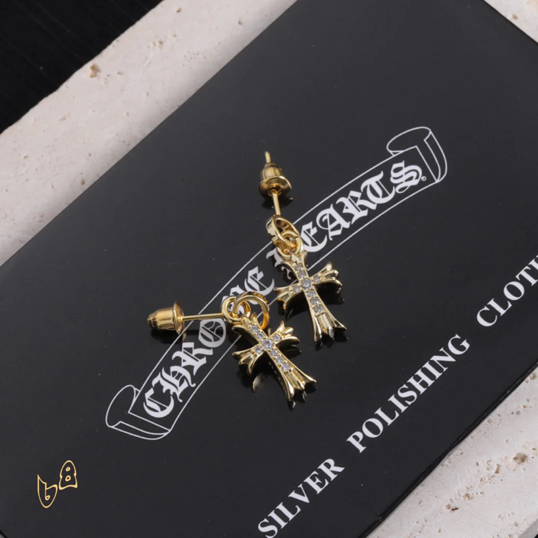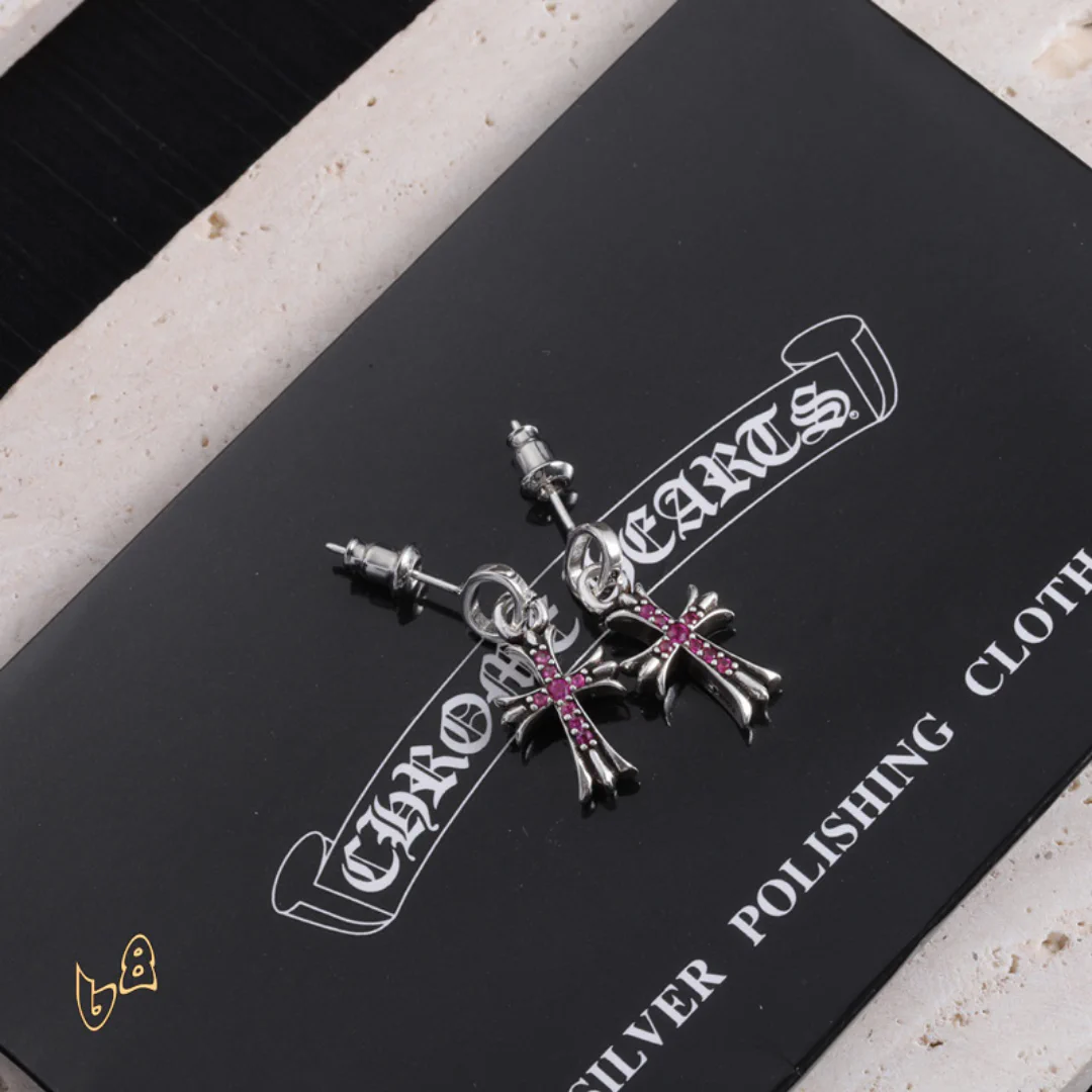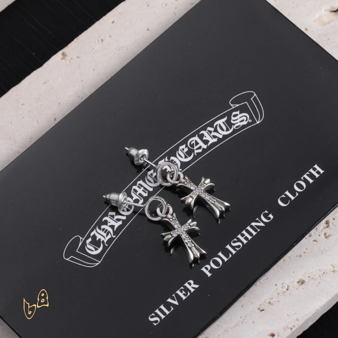 Each pair of Chrome Hearts earrings is a work of art steeped in a gritty, high-fashion aesthetic. With signature details like crosses and unique motifs, these earrings are a statement of fearless individuality and raw attitude. Whether you choose a subtle design or a bold, dramatic piece, these earrings will frame your face and command attention, adding an air of mystery and confidence to your style.