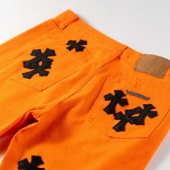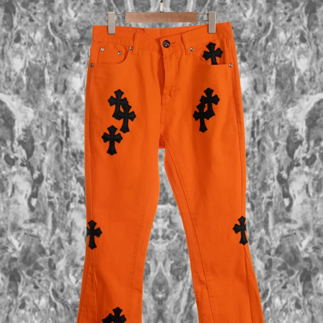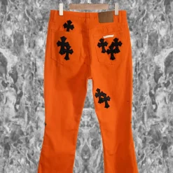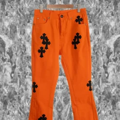Description: Each pair of Chrome Hearts jeans is a work of art steeped in a gritty, high-fashion aesthetic. With iconic details like custom crosses and unique leather patches, these jeans are a statement of fearless individuality and raw attitude. Whether you pair them with a simple tee or a bold jacket, these jeans will be the perfect finishing touch, helping you dominate the street style scene and capture every eye.