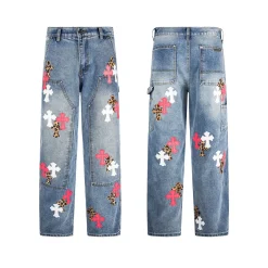Description: Each pair of Chrome Hearts jeans is a work of art steeped in a gritty, high-fashion aesthetic. With iconic details like custom crosses and unique leather patches, these jeans are a statement of fearless individuality and raw attitude. Whether you pair them with a simple tee or a bold jacket, these jeans will be the perfect finishing touch, helping you dominate the street style scene and capture every eye.
