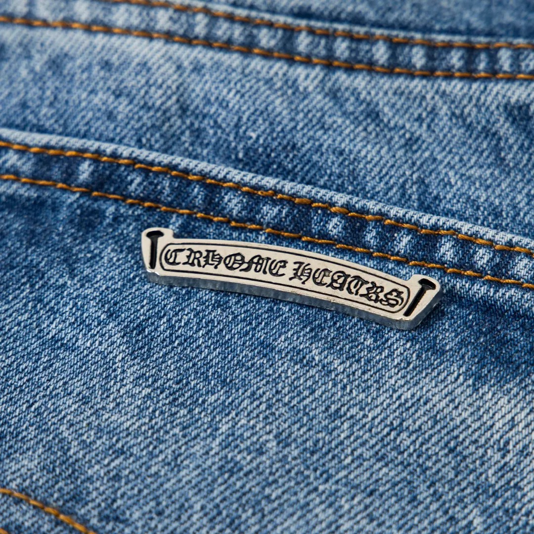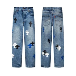 Description: Each pair of Chrome Hearts jeans is a work of art steeped in a gritty, high-fashion aesthetic. With iconic details like custom crosses and unique leather patches, these jeans are a statement of fearless individuality and raw attitude. Whether you pair them with a simple tee or a bold jacket, these jeans will be the perfect finishing touch, helping you dominate the street style scene and capture every eye.