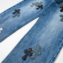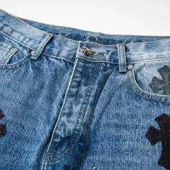 Description: Each pair of Chrome Hearts jeans is a work of art steeped in a gritty, high-fashion aesthetic. With iconic details like custom crosses and unique leather patches, these jeans are a statement of fearless individuality and raw attitude. Whether you pair them with a simple tee or a bold jacket, these jeans will be the perfect finishing touch, helping you dominate the street style scene and capture every eye.