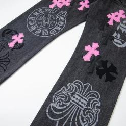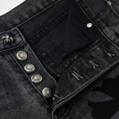 Description: Each pair of Chrome Hearts jeans is a work of art steeped in a gritty, high-fashion aesthetic. With iconic details like custom crosses and unique leather patches, these jeans are a statement of fearless individuality and raw attitude. Whether you pair them with a simple tee or a bold jacket, these jeans will be the perfect finishing touch, helping you dominate the street style scene and capture every eye.