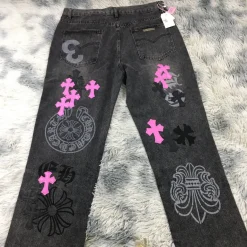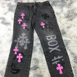 Description: Each pair of Chrome Hearts jeans is a work of art steeped in a gritty, high-fashion aesthetic. With iconic details like custom crosses and unique leather patches, these jeans are a statement of fearless individuality and raw attitude. Whether you pair them with a simple tee or a bold jacket, these jeans will be the perfect finishing touch, helping you dominate the street style scene and capture every eye.
