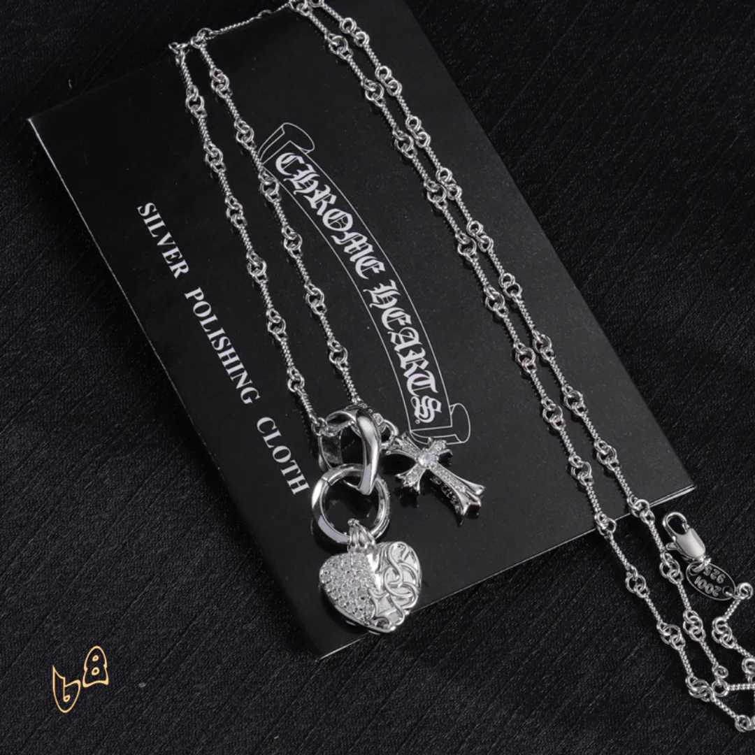 Each Chrome Hearts necklace is a work of art steeped in Gothic-Rock style. With signature details like crosses, daggers, and unique motifs, this piece of jewelry is a statement of strong individuality and rebellion. Whether you pair it with a minimalist or a bold look, this necklace will be the perfect finishing touch, helping you assert your personal style and capture every eye.