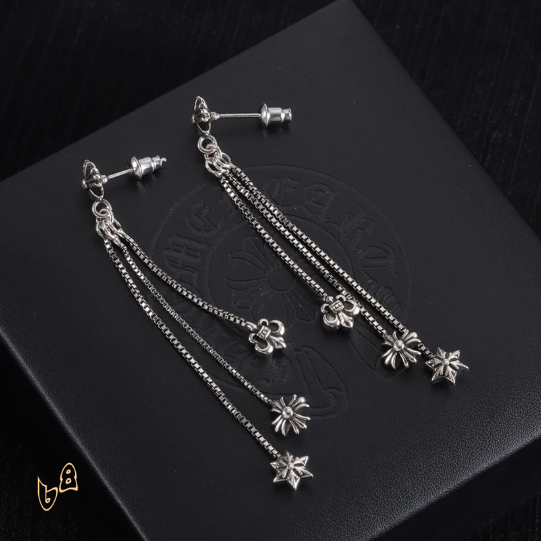 Each pair of Chrome Hearts earrings is a work of art steeped in a gritty, high-fashion aesthetic. With signature details like crosses and unique motifs, these earrings are a statement of fearless individuality and raw attitude. Whether you choose a subtle design or a bold, dramatic piece, these earrings will frame your face and command attention, adding an air of mystery and confidence to your style.