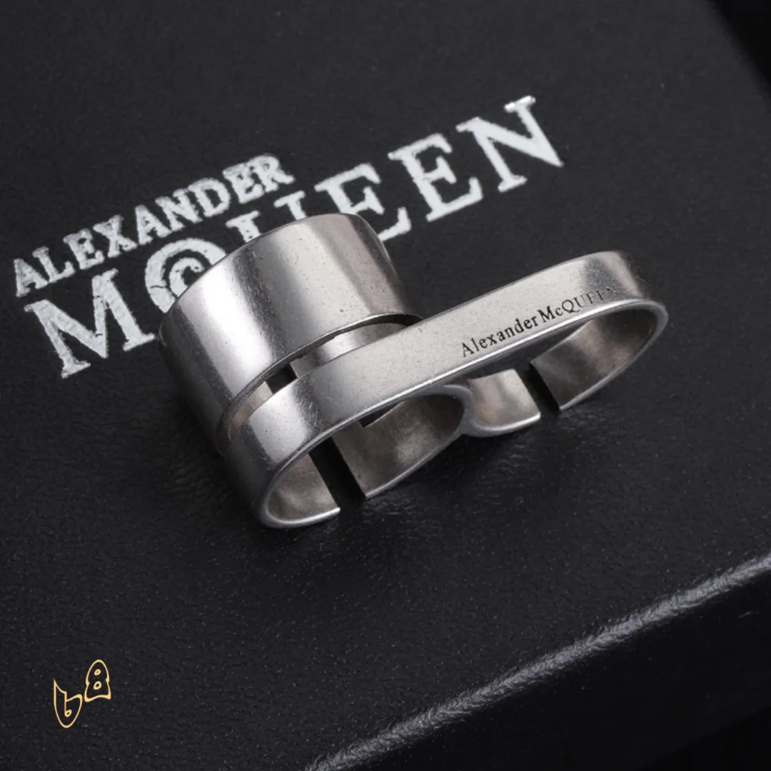 McQueen Double Logo-Engraved Antiqued Ring – MCQ0013