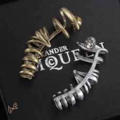 Description: These earrings are a striking fusion of rebellion and elegance. Crafted with meticulous detail, they capture the essence of the McQueen aesthetic. Whether you choose a subtle design or a bold, dramatic piece, these earrings will frame your face and command attention, adding an air of mystery and confidence to your style.