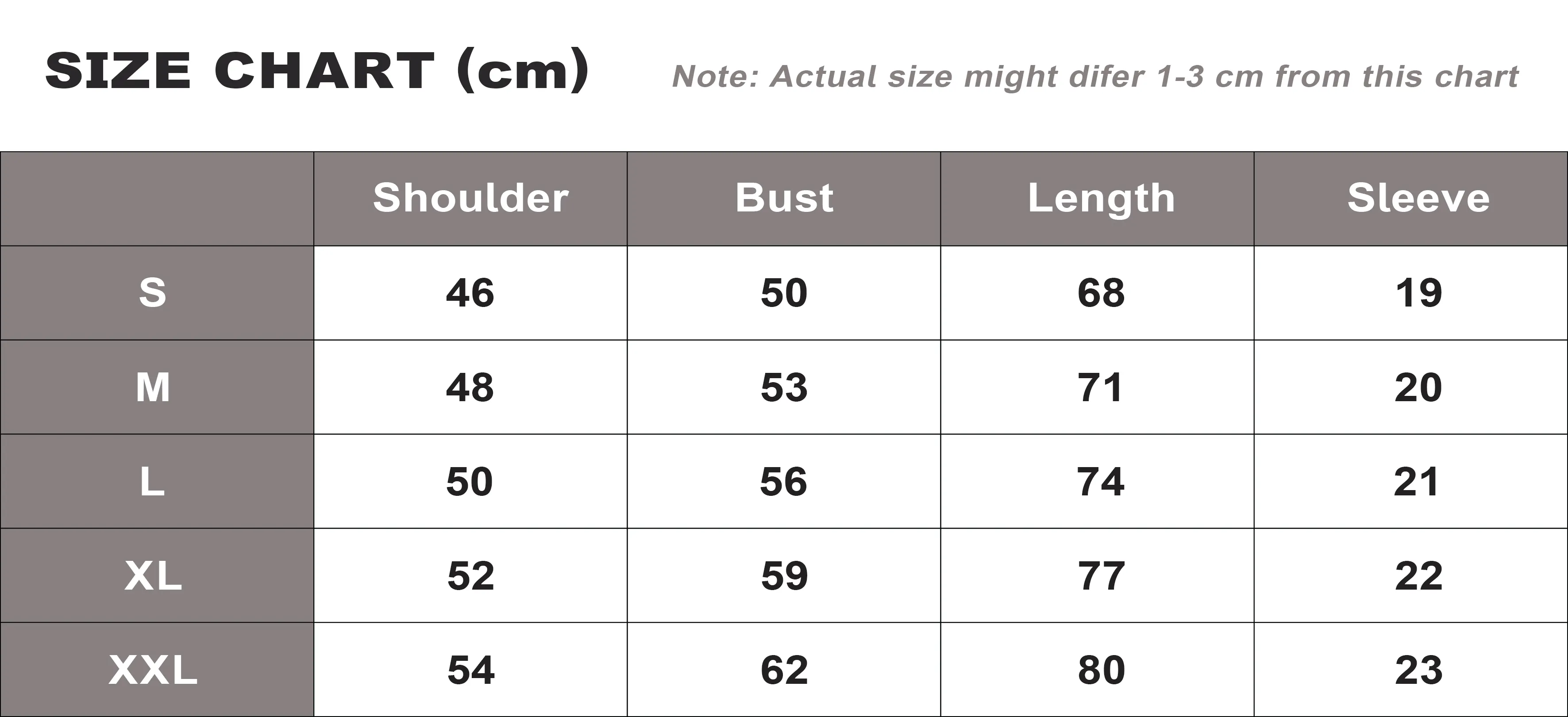 | Size T-Shirt | S, M, L, XL, 2XL |