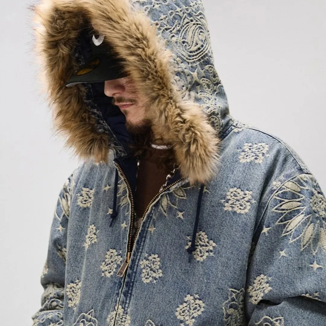 SUP Bandana Jacquard Denim Hooded Work Jacket – SUP0070